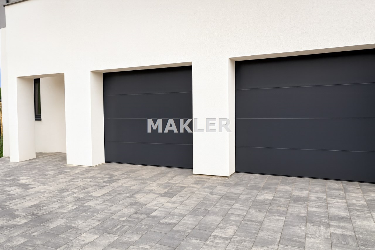 Brama garażowa Krispol – segmentowa białe wewnątrz/grafit na zewnątrz