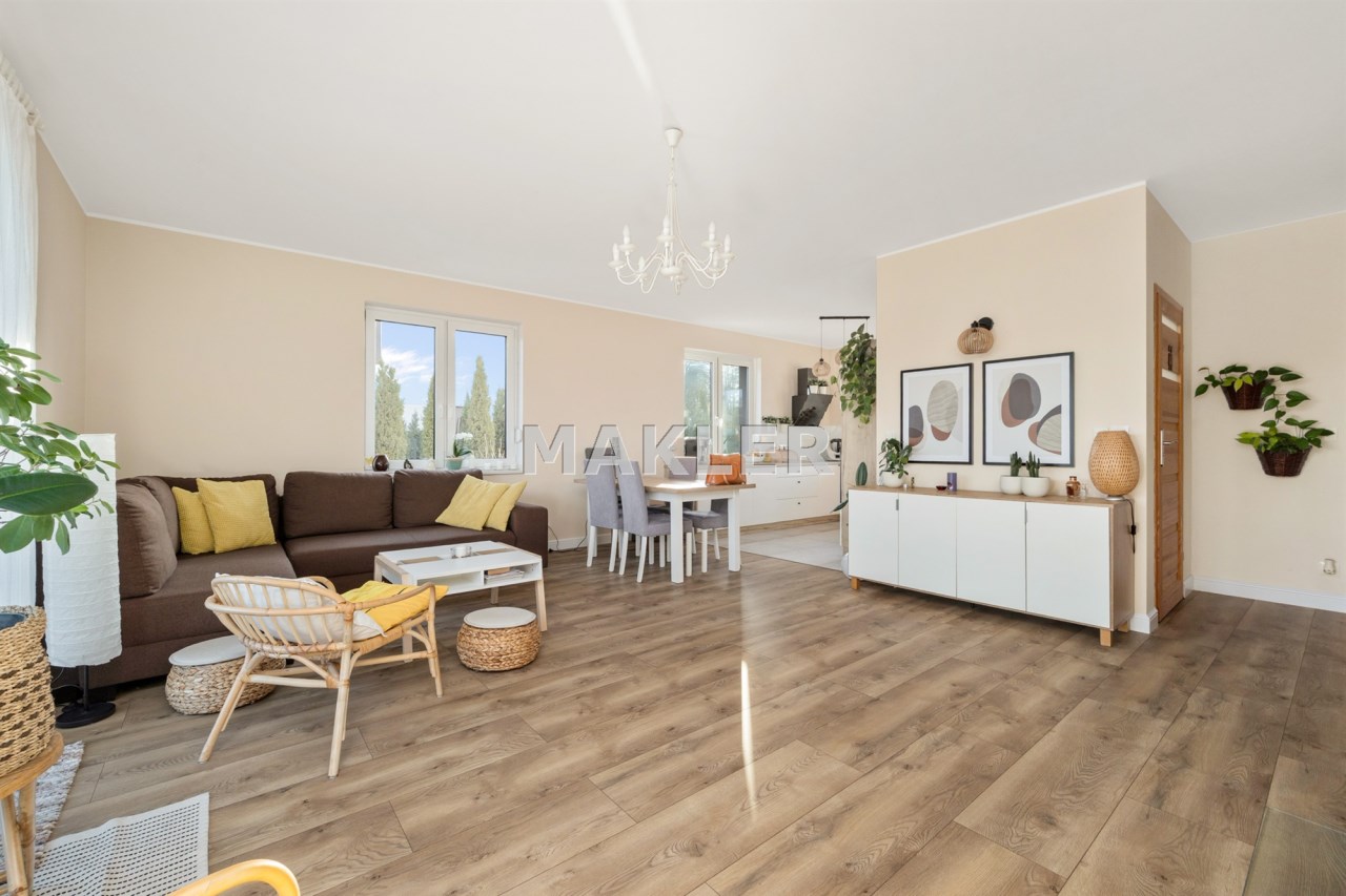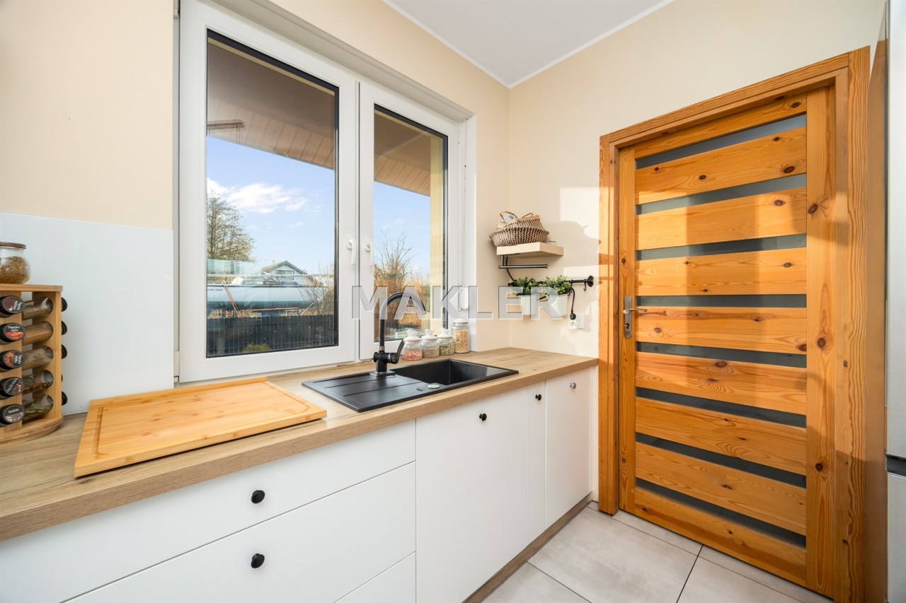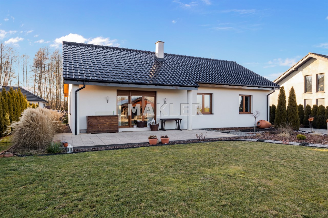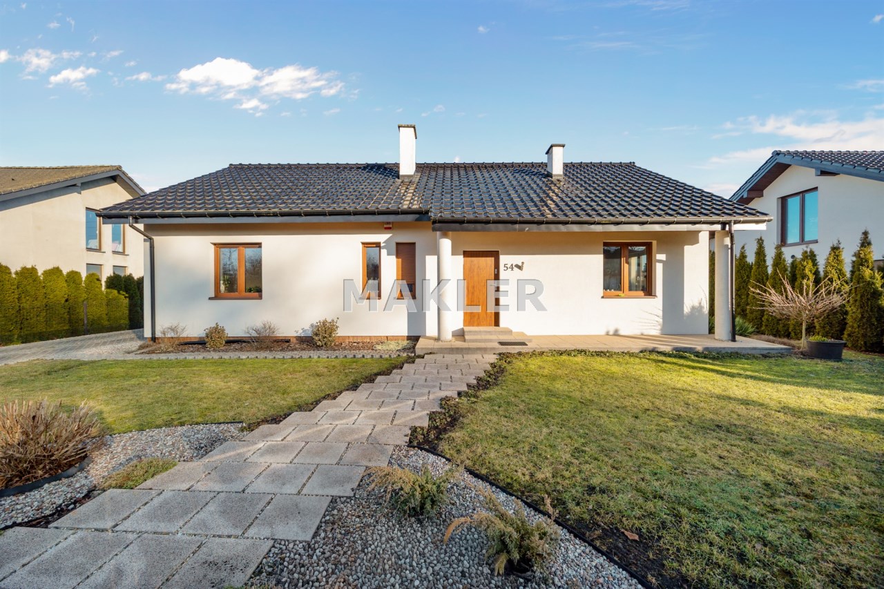 Wybudowany na przełomie 2018/2019 roku, nowoczesny, elegancki i dopracowany w każdym detalu. Położony na pięknie zagospodarowanej działce o powierzchni 1300 m², w kameralnej, ślepej uliczce, w otoczeniu spokojnego sąsiedztwa — zapewnia prywatność, bezpieczeństwo i komfort codziennego życia.