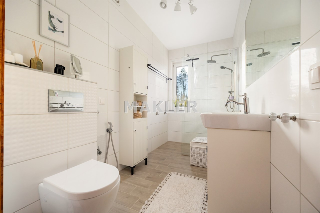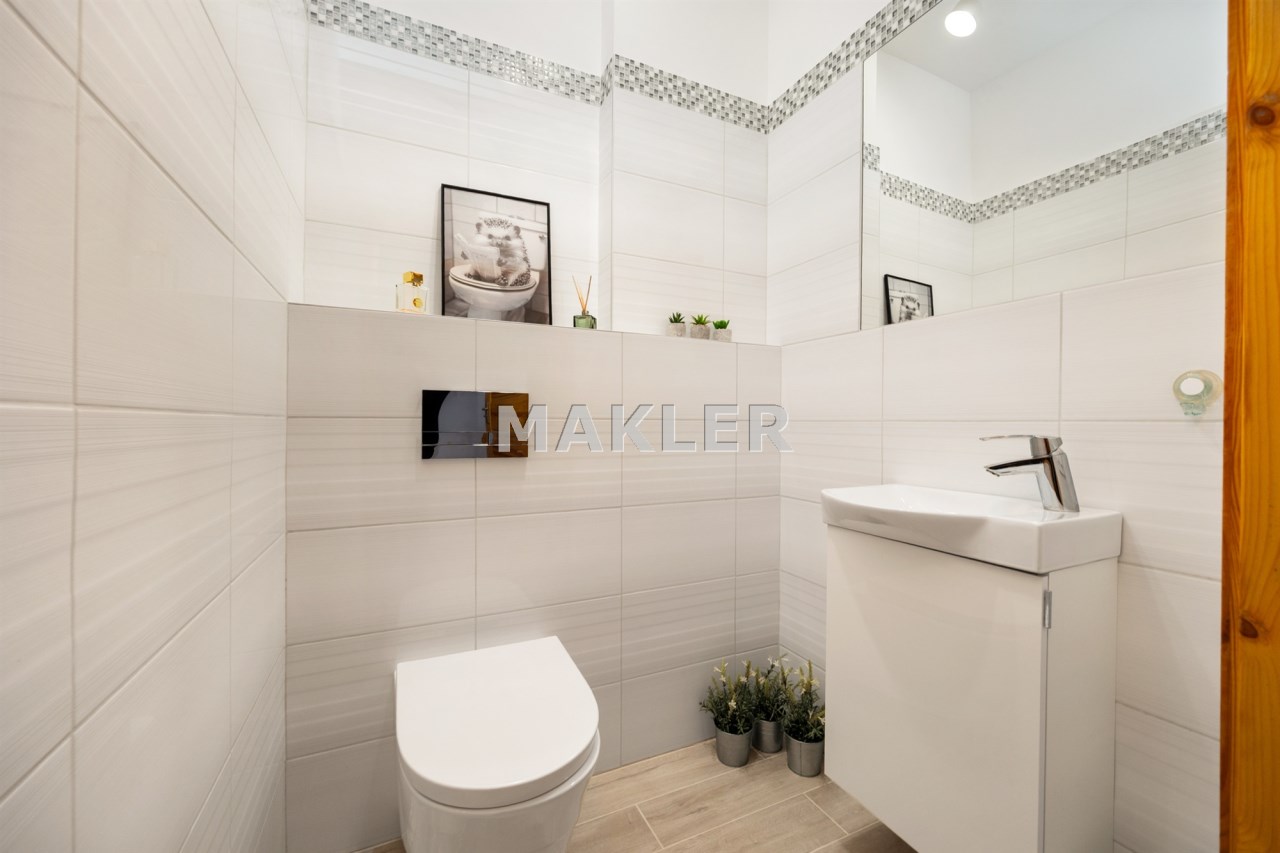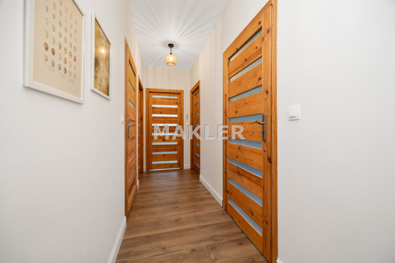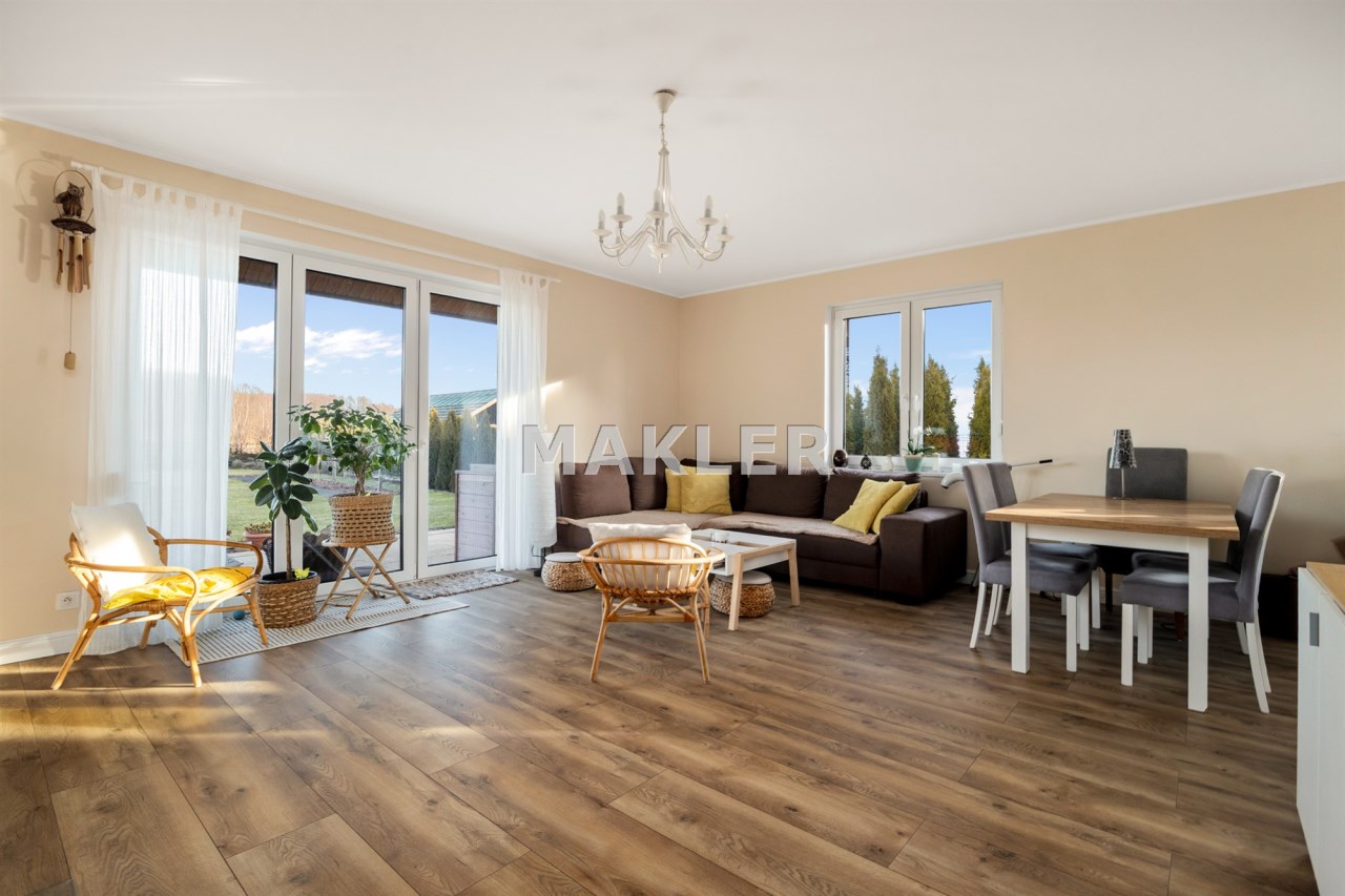 Wybudowany na przełomie 2018/2019 roku, nowoczesny, elegancki i dopracowany w każdym detalu. Położony na pięknie zagospodarowanej działce o powierzchni 1300 m², w kameralnej, ślepej uliczce, w otoczeniu spokojnego sąsiedztwa — zapewnia prywatność, bezpieczeństwo i komfort codziennego życia.