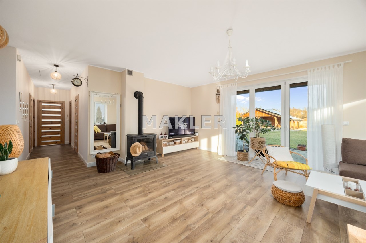 Powierzchnia domu to 111 m². Wnętrze zostało zaprojektowane funkcjonalnie i harmonijnie, z dbałością o jakość wykończenia oraz ciepły, przytulny charakter.