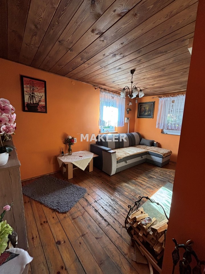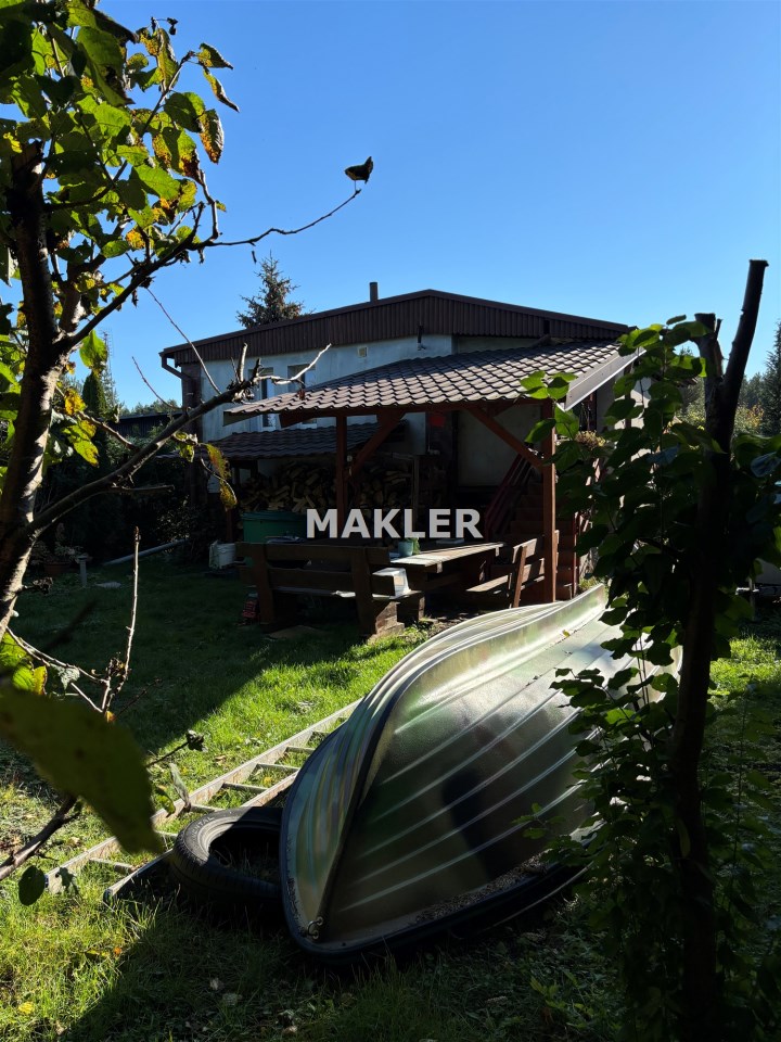 Działka o powierzchni 338m na której usytuowany jest dom o powierzchni 30m.Dół domu to kuchnia, pomieszczenie gospodarcze, natomiast góra to salon, sypialnia i łazienka.Dom ogrzewany kominkiem typu koza góra i dół.