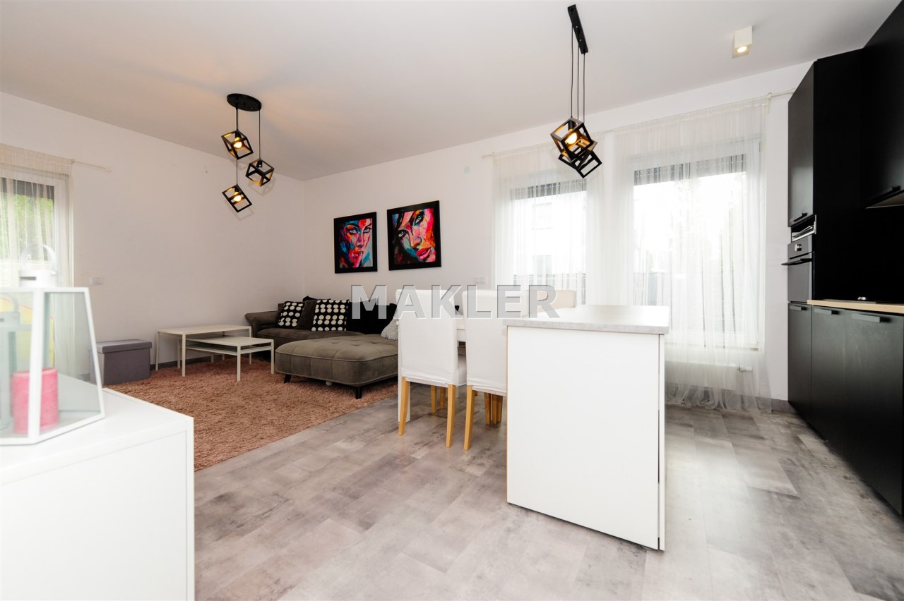 Dom piętrowy o powierzchni 110 m składa się z dołu na którym znajduje się salon z aneksem kuchennym, pokój sypialnia plus łazienka.Góra to dwie sypialne, wydzielony aneks kuchenny z korytarzem.