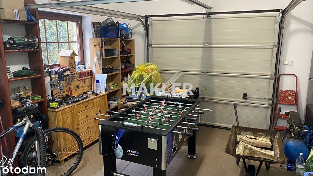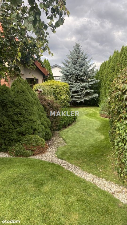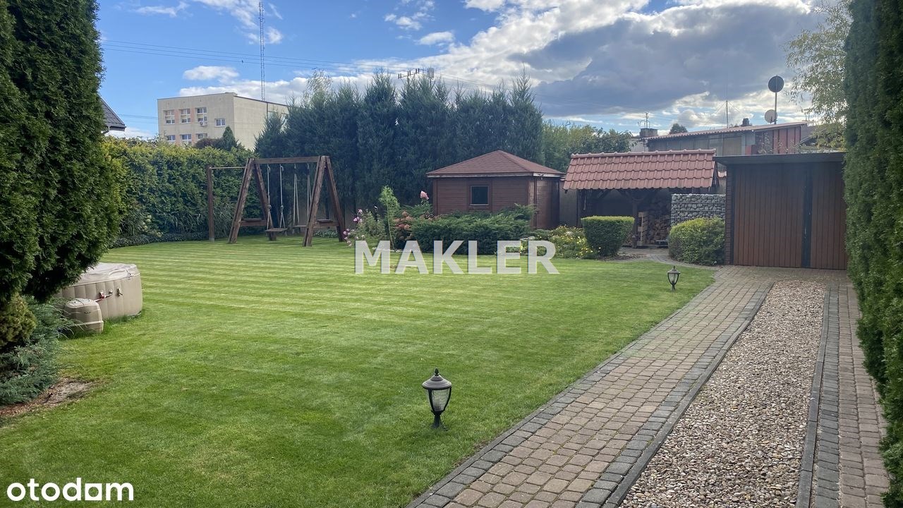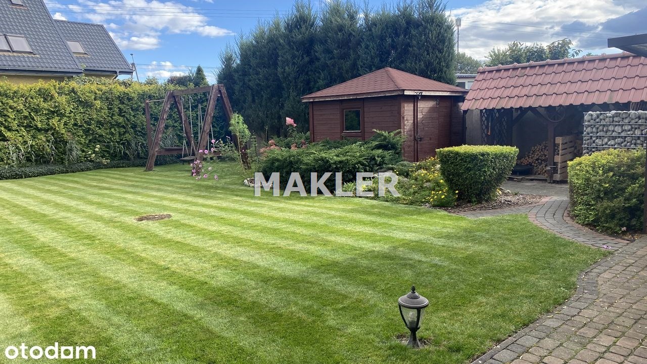 Duża działka 1109 m² z pięknie zaprojektowanym ogrodem: liczne nasadzenia, wodospad, huśtawka, domek narzędziowy (ok. 10 m²), zadaszenie na drewno, dodatkowy ocieplony garaż blaszany (ok. 15 m²) oraz automatyczny system nawadniania.