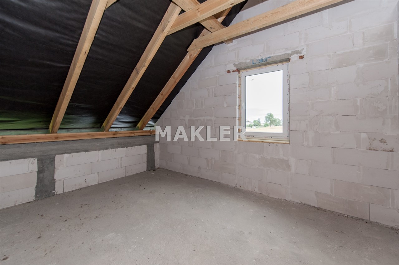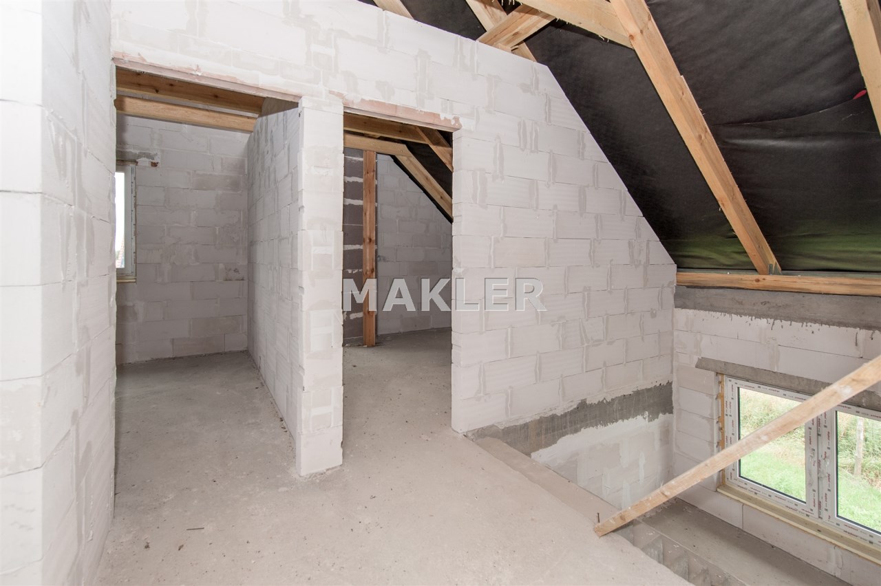 Dom w stanie surowym zamkniętym o powierzchni użytkowej ok 125 m2, z 18 m2 garażem w bryle budynku (łącznie 143 m2).