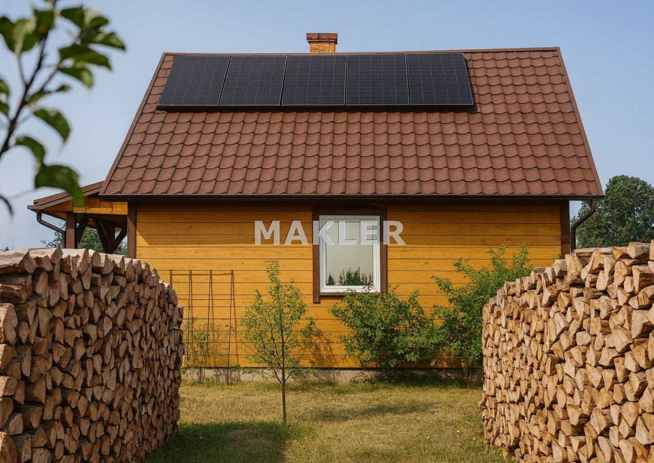 Dom ogrzewany jest kominkiem typu Jøtul na drewno i brykiet, wyposażony w fotowoltaikę, własne ujęcie wody (studnia 24 m) oraz przydomową oczyszczalnię ścieków, co sprawia, że jest bardzo tani w utrzymaniu.
