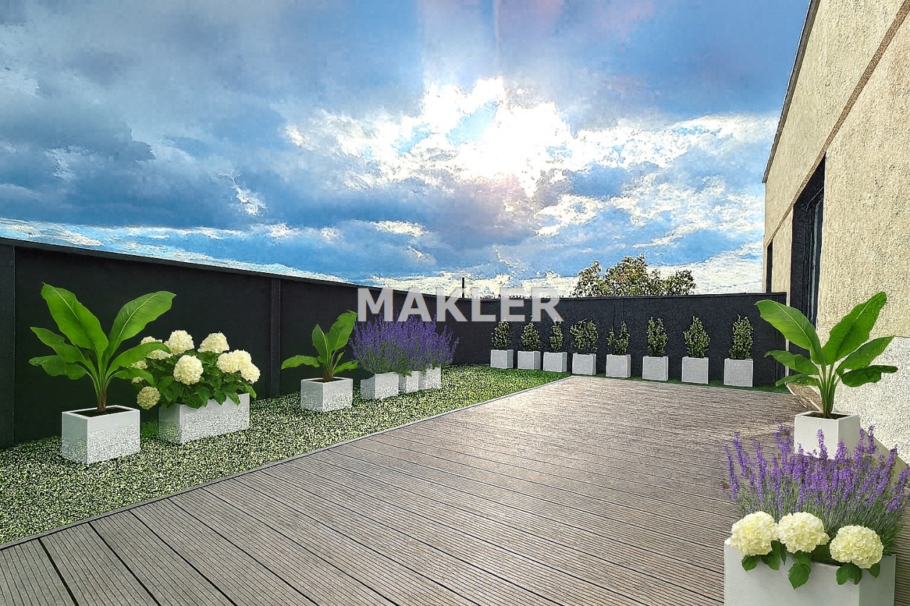 Ta komfortowa oaza ciszy i spokoju o powierzchni użytkowej 73,95 m2 składa się z salonu z aneksem kuchennym, z którego jest wyjście na ogromny taras (strona południowa) o powierzchni około 85 m2, dwóch sypialni, garderoby, spiżarki, przedpokoju i dużej, wygodnej łazienki.
