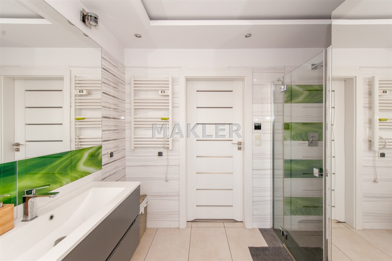 Dom w zabudowie blizniaczej z pięknie zagospodarowanym ogródkiem, wieloletnie obsadzenia.Dom o powierzchni 180m składa się z salonu, kuchni, sypialni,łazienki,szatni, natomiast góra dom to dwie sypialnie ,garderoba,łazienka, przestronny korytarz z wyjściem na duży taras.