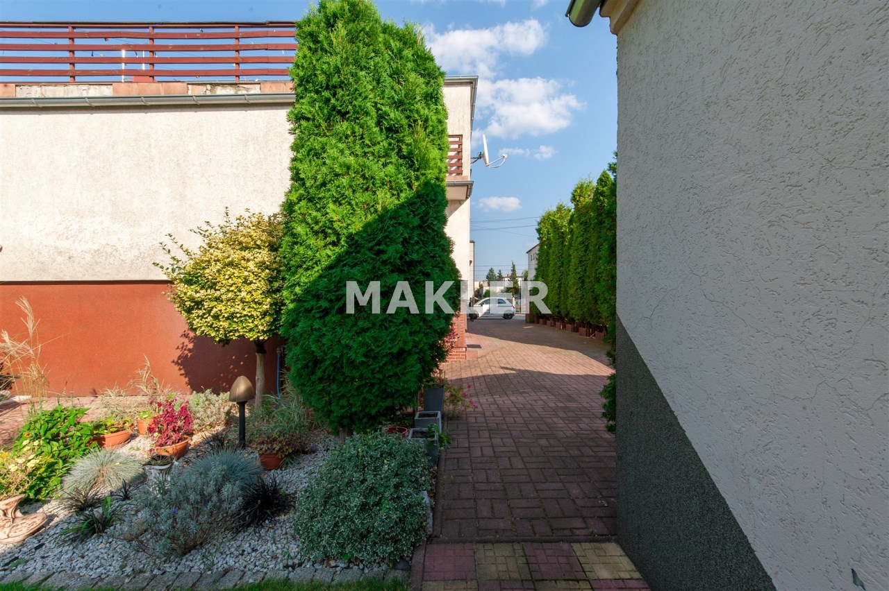 Dom usytuowany jest na działce o powierzchni 397m.Na tej działce znajduje się piękny ogródek, oraz garaż wolnostojący z dodatkowym pomieszczeniem, brama sterowana elektrycznie, monitoring.