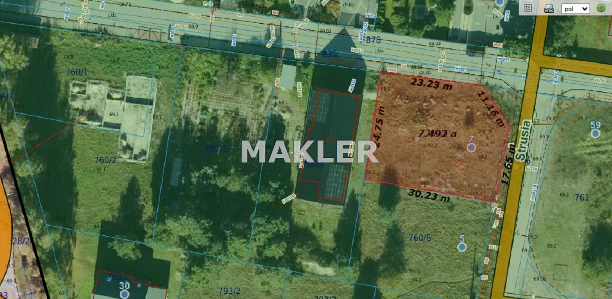 Lokalizacja przy ulicy Strusiej. w drodze media, na działce prąd.