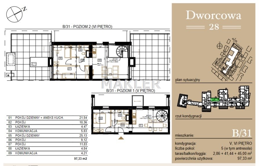- mieszkania dwupoziomowe z widokiem na panoramę miasta