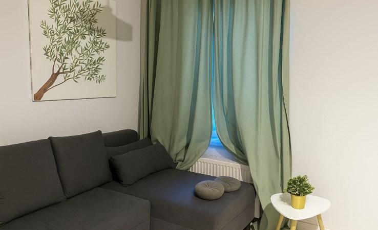 Mieszkanie składa się z dwóch pokoi, które mimo niewielkiego metrażu zostały urządzone w sposób ergonomiczny i przytulny.