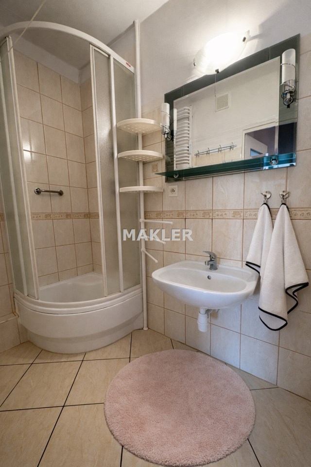 Łazienka wyposażona w kabinę prysznicową. Oddzielne WC w kaflach.