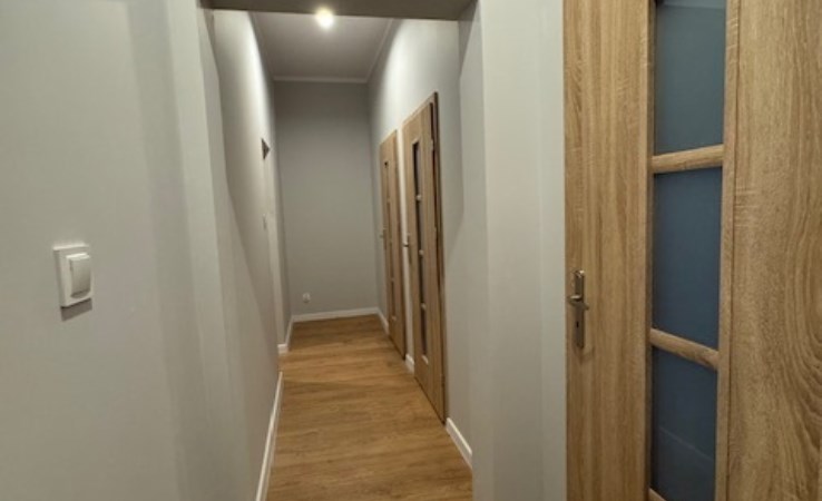 Wnętrze nie wymaga dodatkowych nakładów finansowych. Na podłodze sypialni położone praktyczne panele, natomiast w kuchni estetyczne kafle. Kuchnia przypadnie do gustu każdemu, kto lubi gotować ze względu na sporo miejsca do pracy i przechowywania.