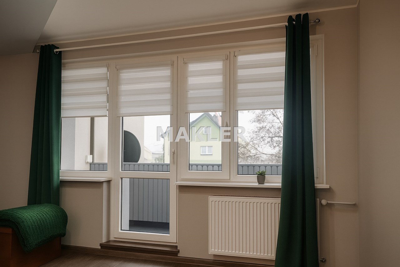 Mieszkanie po pracach modernizacyjnych, z jasną strefą dzienną i balkonem na poranną kawę.