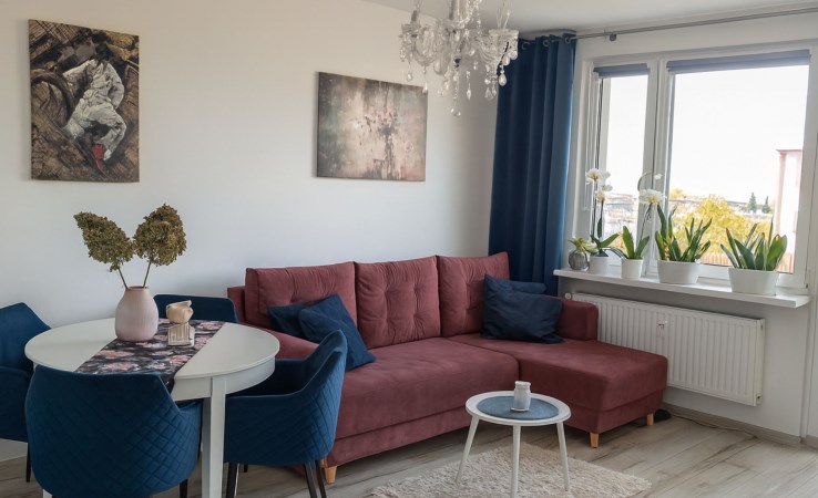 W cenie mieszkania pozostaje pralka, lodówka, kuchenka z piekarnikiem oraz meble widoczne na zdjęciach.