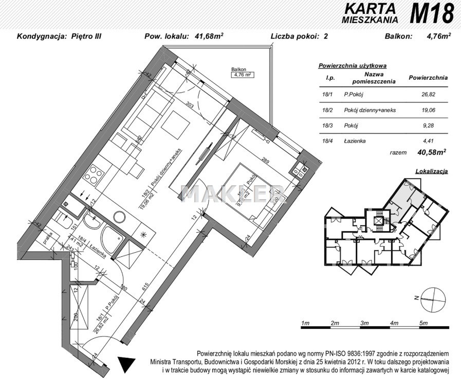 Przedstawiamy 2 pokojowe, mieszkanie o powierzchni 41,68m2 na 3 piętrze nowoczesnego bloku z windą!!