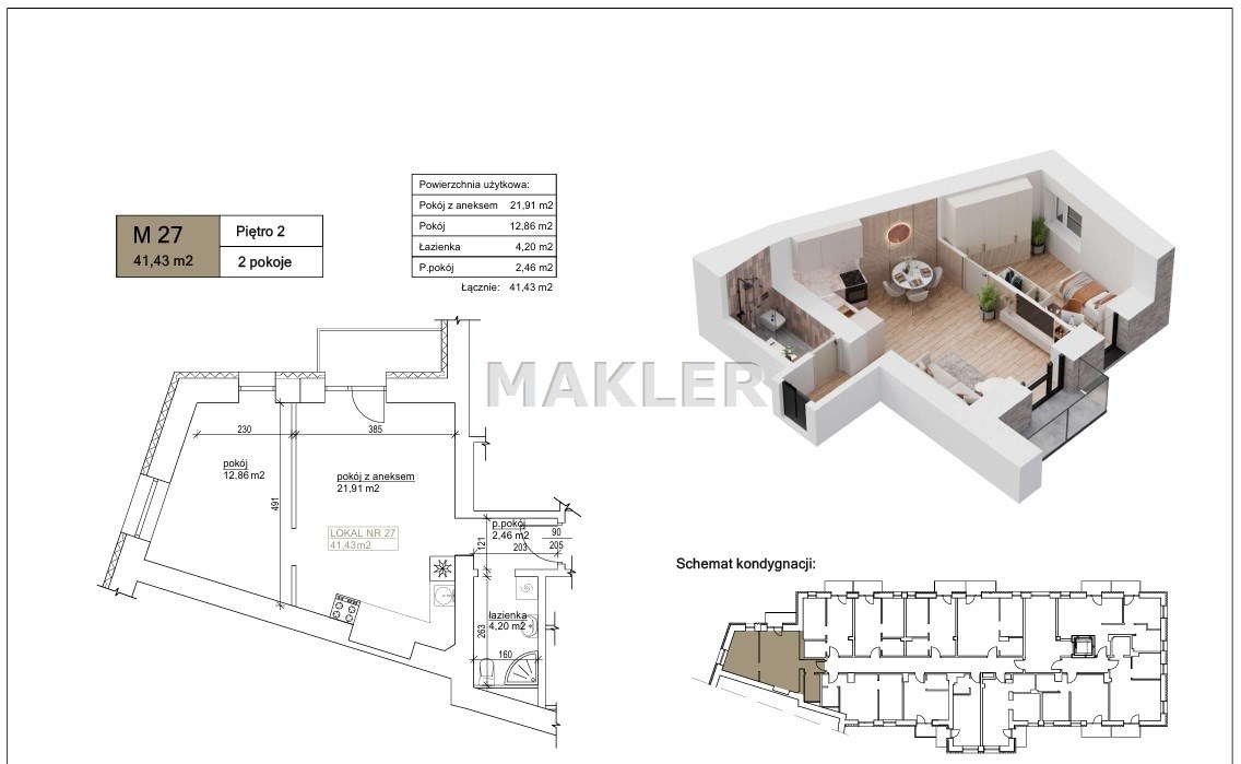 | Powierzchnia użytkowa [m2] | 41,43 m² |