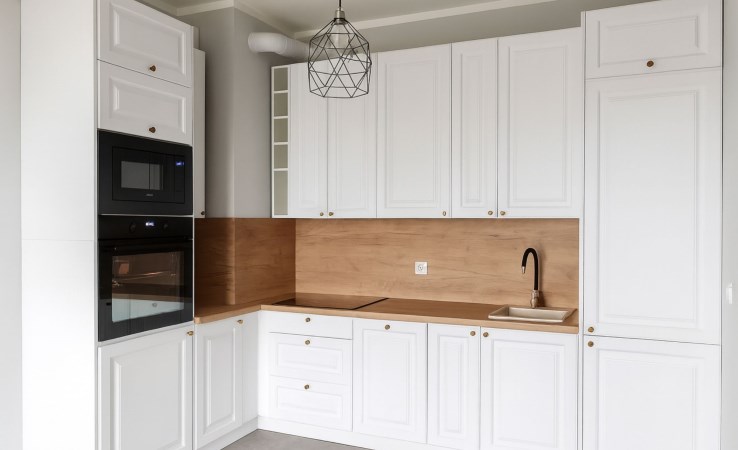 Kuchnia w zabudowie, wyposażona i gotowa do użytku