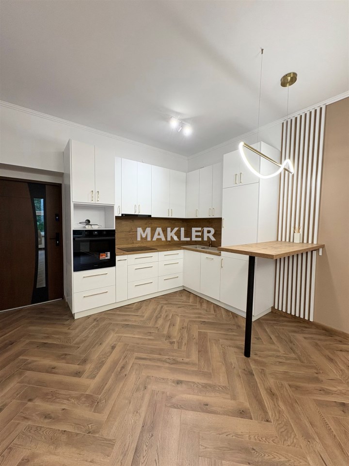 Mieszkanie zostało wyremontowane w 100% dzięki czemu zyskujesz kilkanaście lub więcej lat pewności i spokoju, że wszystko sprawnie działa. Właściciel zadbał o wymianę instalacji, piękne podłogi oraz nowoczesne i funkcjonalne meble w zabudowie kuchennej. Sprzęty AGD pozostają w cenie i są objęte gwarancją. W łazience biel połączona ze złotymi elementami komponuje się bardzo elegancko.