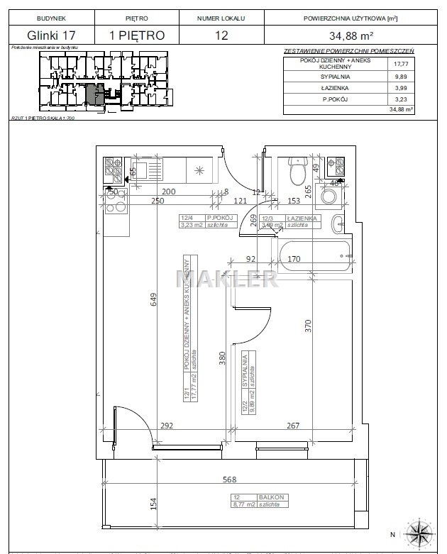 | Powierzchnia użytkowa [m2] | 34,88 m² |