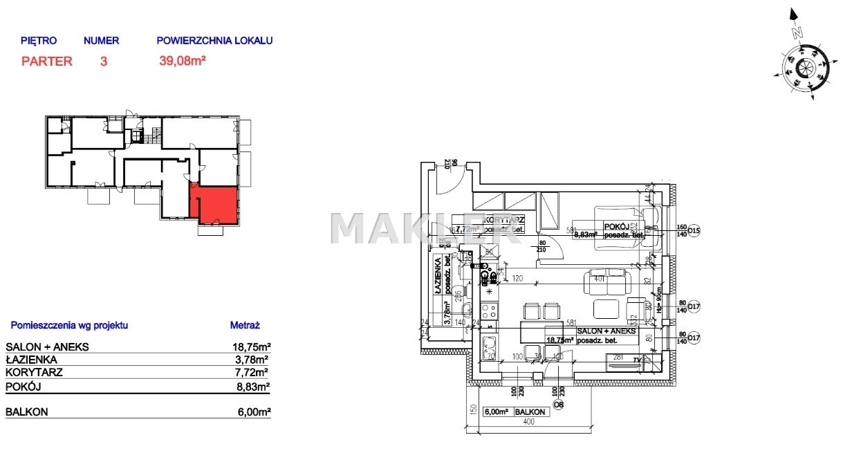 | Powierzchnia użytkowa [m2] | 39,08 m² |