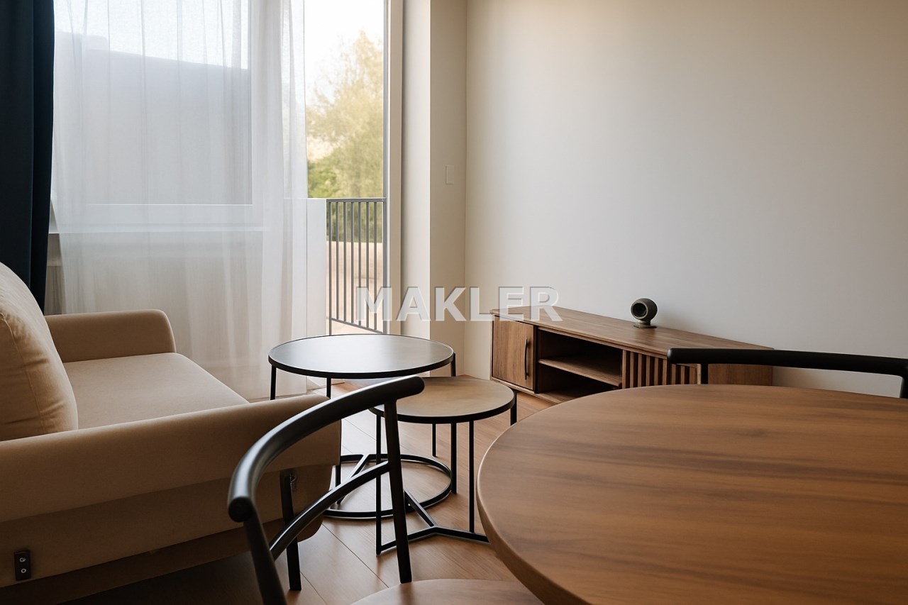 Makler Nieruchomości prezentuje ofertę sprzedaży nowoczesnego mieszkania o powierzchni 39 m², położonego na parterze w budynku z 2024 roku na Osiedlu Leśnym.