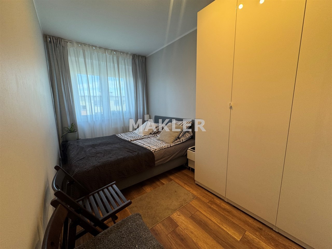 Mieszkanie charakteryzuje się przemyślanym układem pomieszczeń oraz dwustronną ekspozycją okien wschód–zachód, co gwarantuje naturalne światło przez cały dzień.