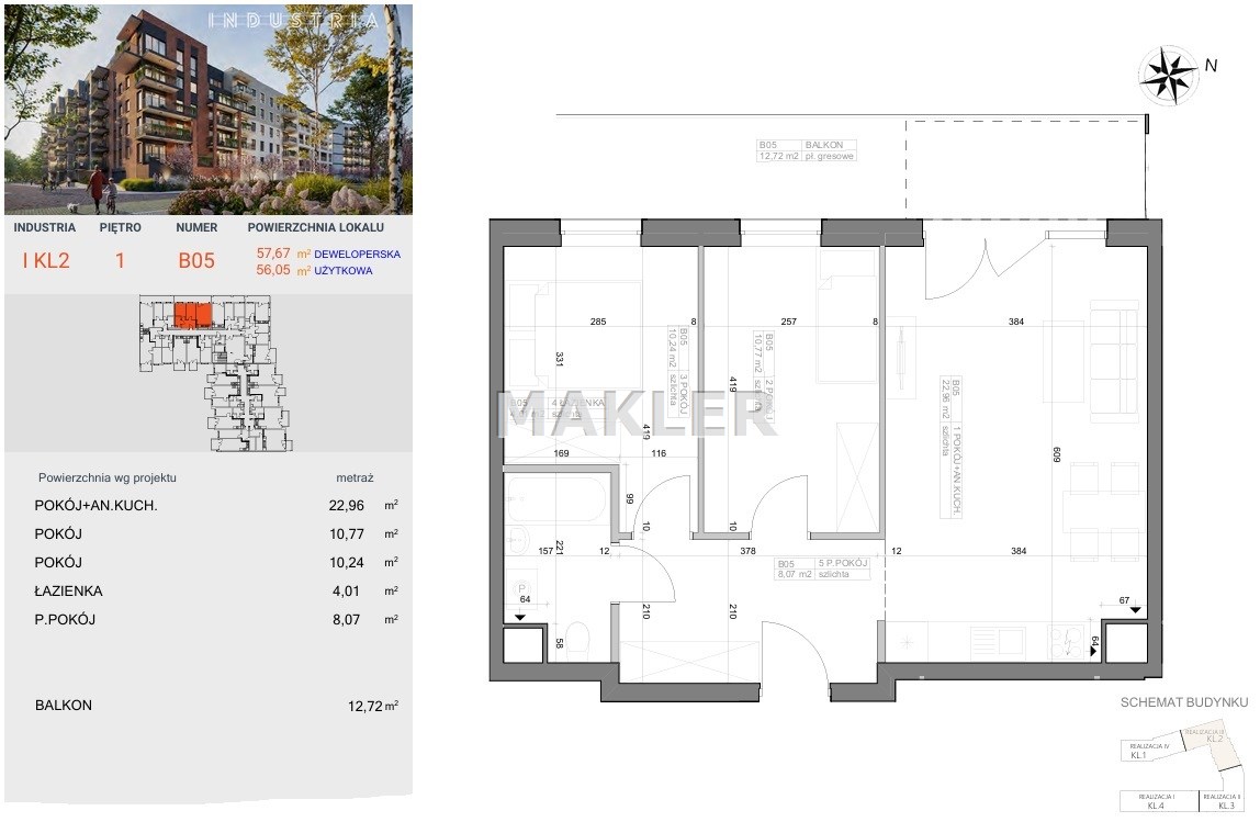 | Powierzchnia użytkowa [m2] | 56,05 m² |