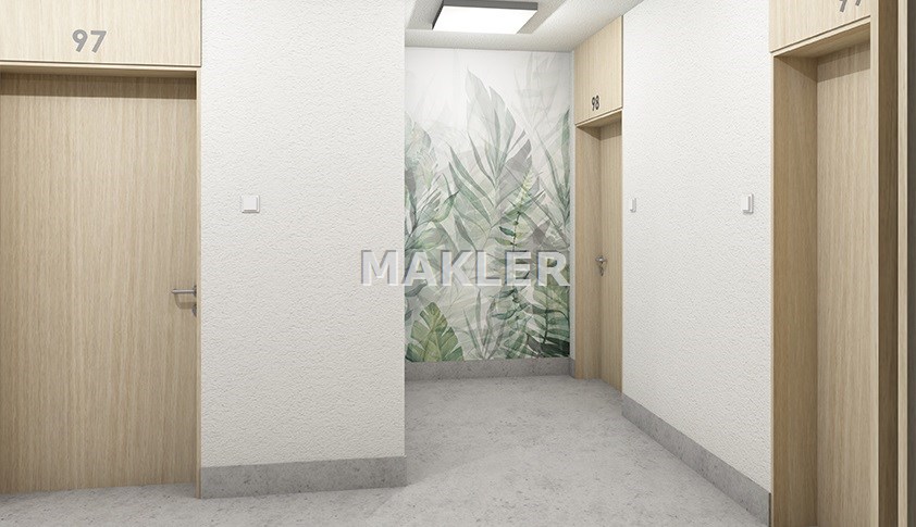 Wewnątrz budynku zadbano o każdy szczegół. Stylowe wykończenie części wspólnych z użyciem elementów dekoracyjnych w postaci motywów roślinnych i drewnianych nadają niepowtarzalnego, ciepłego i przyjaznego charakteru.
