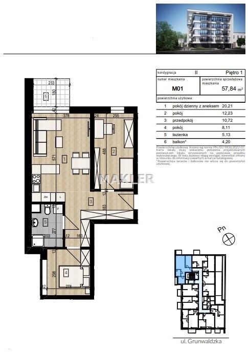 | Powierzchnia użytkowa [m2] | 56,30 m² |