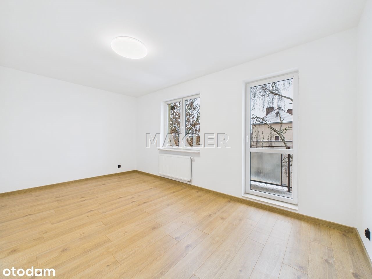 przestronny salon z wyjściem na balkon