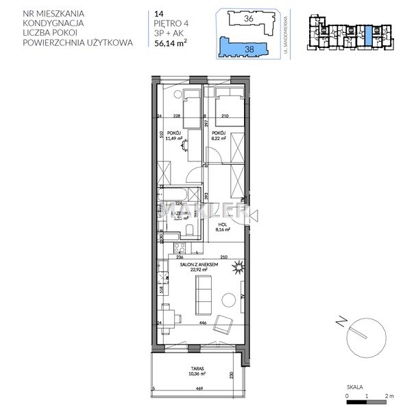 Przedstawiamy 3 pokojowe mieszkanie o powierzchni 56 m2 na 4 piętrze w bloku z cichą windą.