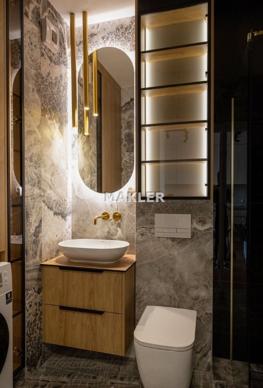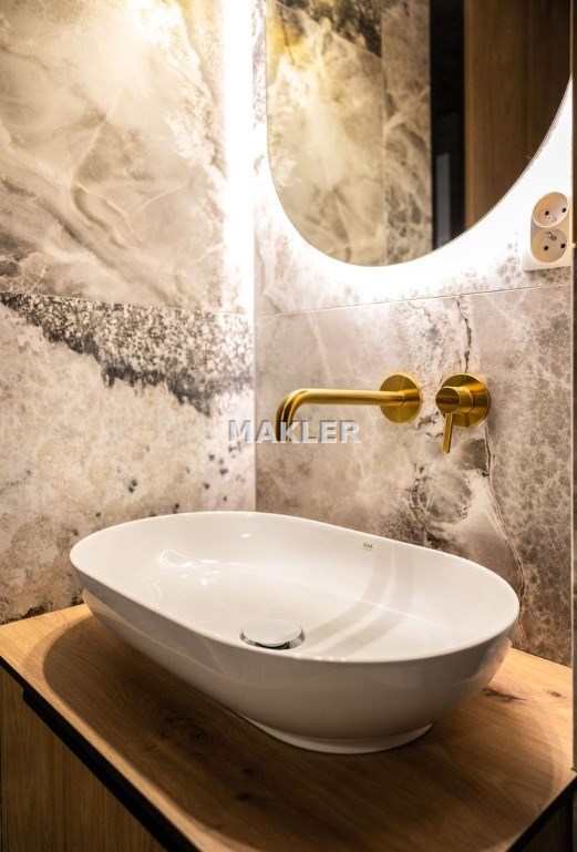 - łazienka "z charakterem", w wysokiej jakości wykończeniu, ze strefą prysznicową walk-in, komplet mebli na zamówienie, pralka.