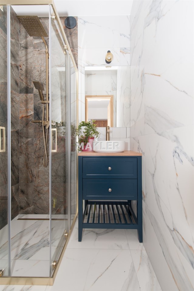 Mieszkanie przeszło generalny remont obejmujący wymianę instalacji elektrycznej i wodno-kanalizacyjnej, wykonanie nowych wylewek, podłóg, gładzi i malowanie ścian. Kuchnia została wykonana na wymiar i wyposażona w sprzęt AGD, łazienka wykończona w nowoczesnym standardzie. Wymieniono drzwi wewnętrzne wraz z ościeżnicami oraz zamontowano nowe drzwi wejściowe o podwyższonej klasie bezpieczeństwa.