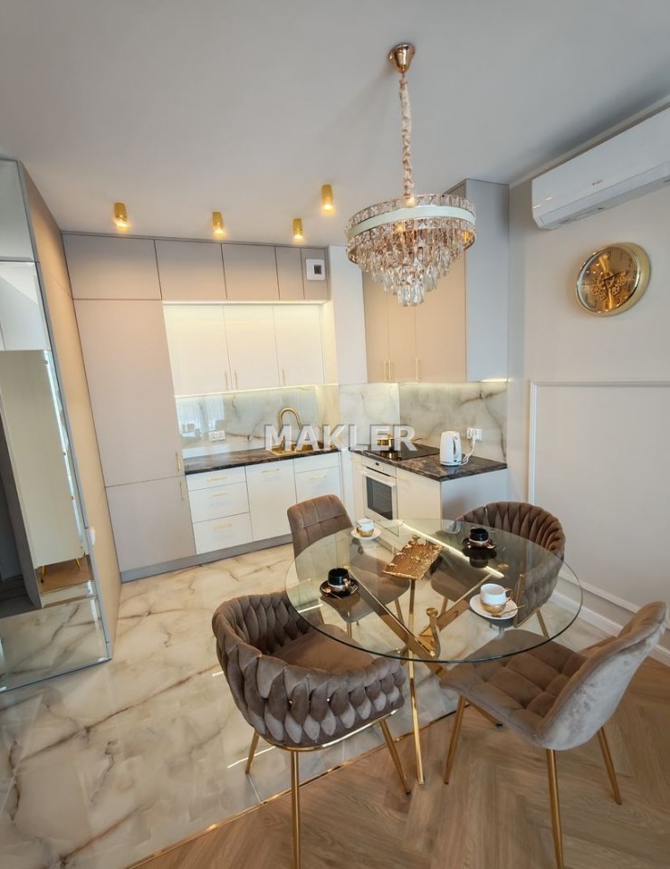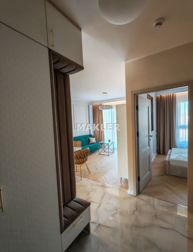Mieszkanie zostało wykończone w bardzo wysokim standardzie, z wykorzystaniem materiałów klasy premium oraz starannie dobranych detali dzięki czemu całość tworzy spójną, elegancką i ponadczasową przestrzeń, która spełni oczekiwania nawet najbardziej wymagających klientów.