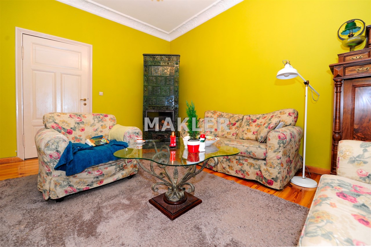 W mieszkaniu panuje niepowtarzalny klimat dzięki dbałości o każdy detal. Salon został urządzony w bardzo przytulny sposób. Piękne meble i kolorystyka ścian sprawiają, że to idealne miejsce na wypoczynek. Mimo tego, że mieszkanie jest ogrzewane piecem gazowym wstawiono piec z kominkiem, przy którym się zrelaksujesz po trudnym dniu. Wysokość pomieszczeń daje przestrzeń i komfort.
