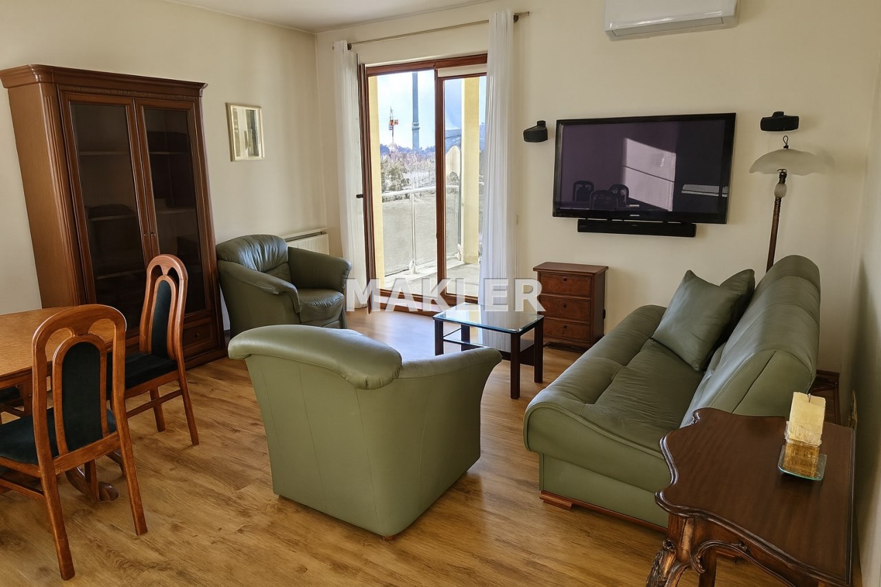 Salon (21 m²) – wyjście na taras, klimatyzacja, meble, telewizor