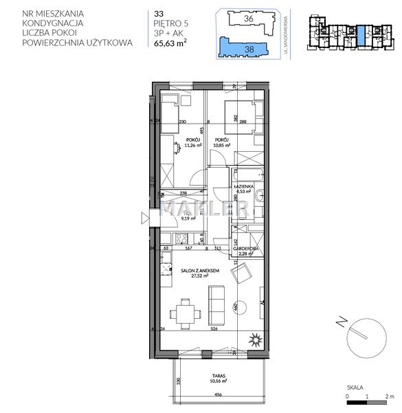 Przedstawiamy 3 pokojowe mieszkanie o powierzchni 65,63 m2 na 5 piętrze w bloku z cichą windą.