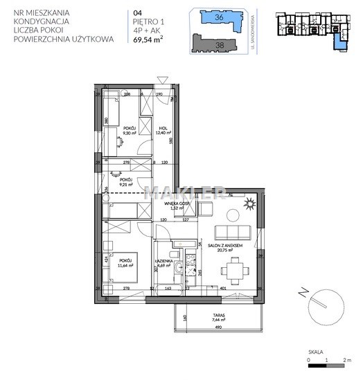 | Powierzchnia użytkowa [m2] | 69,54 m² |