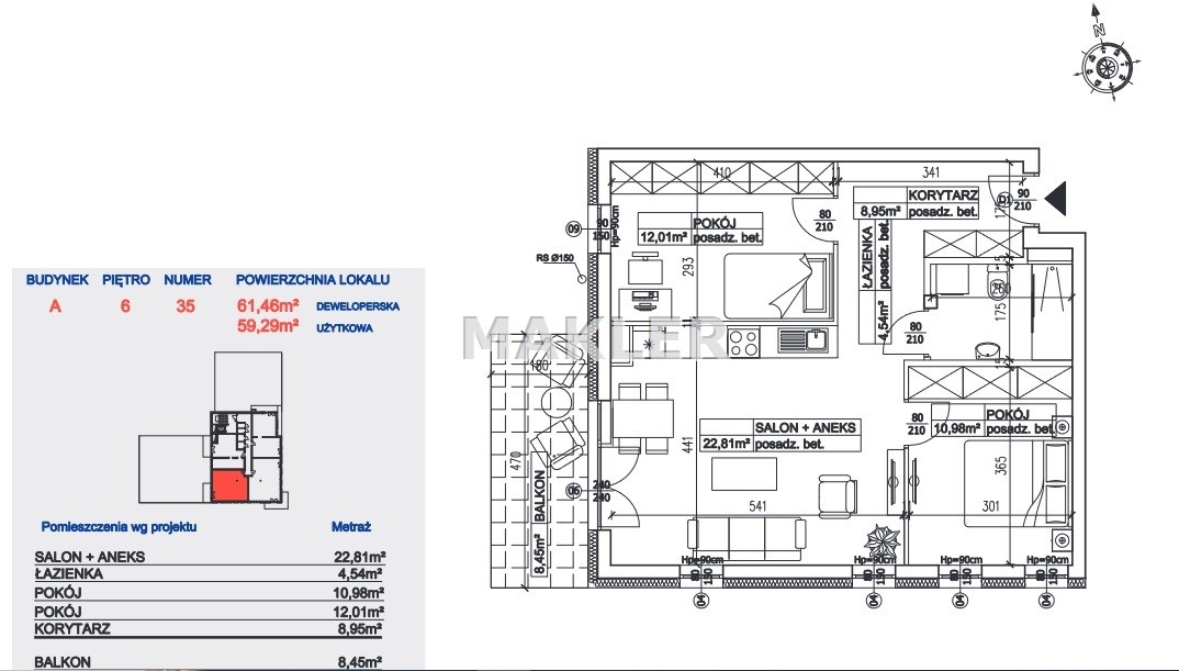 | Powierzchnia użytkowa [m2] | 59,42 m² |