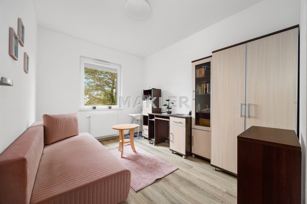 - przestronny salon z wyjściem na 13-metrowy taras, który zaprasza do porannej kawy w promieniach słońca pośród drzew,