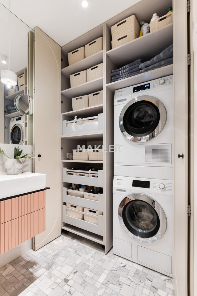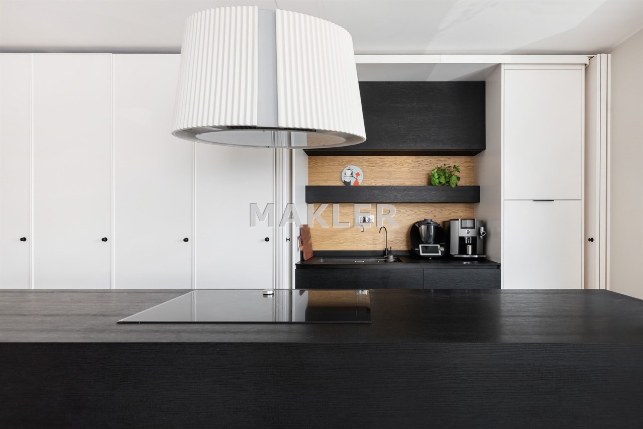 Zabudowa stolarska, systemy szuflad Blum Servo-Drive, wysokiej klasy AGD Samsung Chef Collection (piekarnik, płyta indukcyjna, lodówka, zamrażarka, zmywarka w zabudowie)
