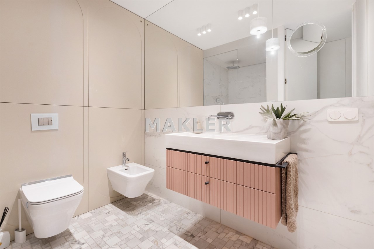 Mieszkanie przeszło generalny remont osiem lat temu (łazienka, cała instalacja elektryczna i hydrauliczna, trzyszybowe okna). Rok temu zamontowano klimatyzację, odnowiono wszystkie ściany (farby Flugger), a podłogi i tynki są w doskonałym stanie – całość prezentuje się jak nowe.