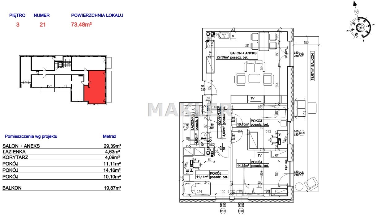 | Powierzchnia użytkowa [m2] | 74,20 m² |