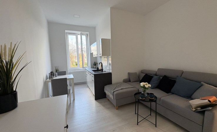 Mieszkanie położone na 5 piętrze nowoczesnego bloku z 2025 roku na terenie zamkniętym z pięknie zagospodarowanym terenem dookoła budynku. Powierzchnia mieszkania wynosi 20 m2 i została zaaranżowana na: