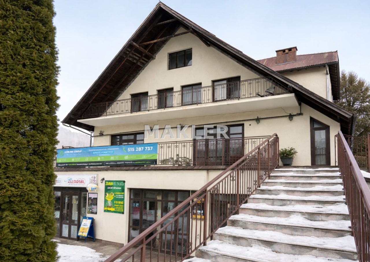 Na sprzedaż POLECAMY budynek o charakterze usługowo-mieszkalnym z dużym potencjałem inwestycyjnym. Obiekt może funkcjonować jako kompleks hotelowo-usługowy, z możliwością prowadzenia restauracji oraz działalności handlowej.
