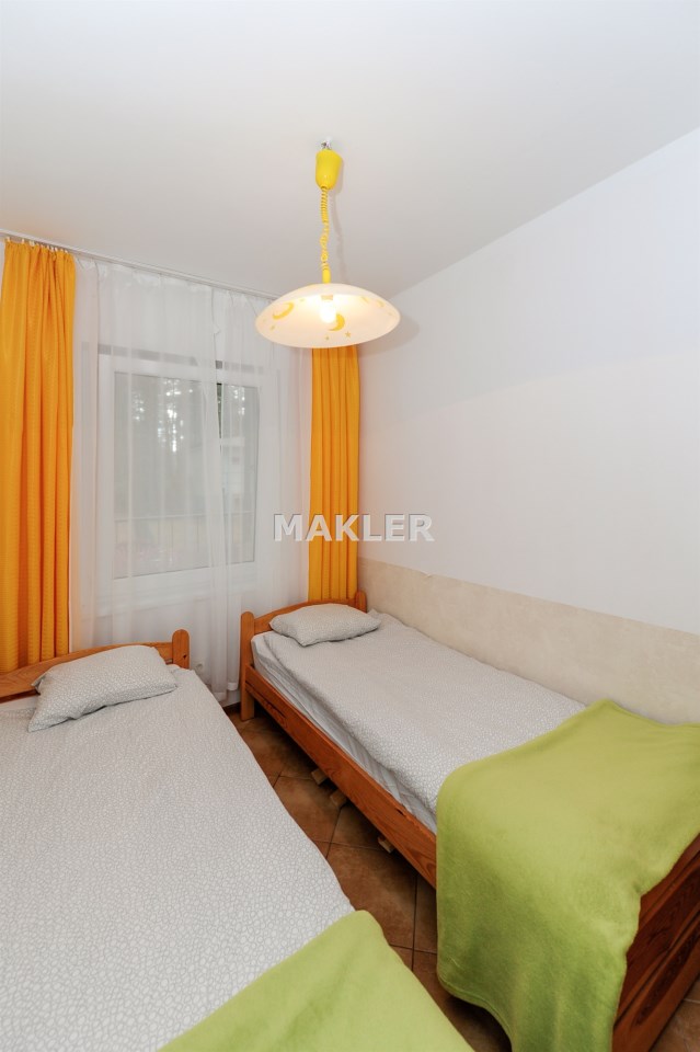 -Parter:recepcja,kuchnią do dyspozycji wczasowiczów,świetlicą oraz apartament,składający się z dwóch sypialni,łazienki i aneksu kuchennego,razem pow.ok.40m2